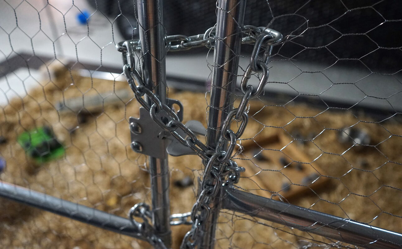Die Installation „Hühnerstall VIDAXL, Stahl, verzinkt“ weist auf die naturfernen, gewaltvollen Aspekte unserer aktuellen Lebensmittelproduktion hin.