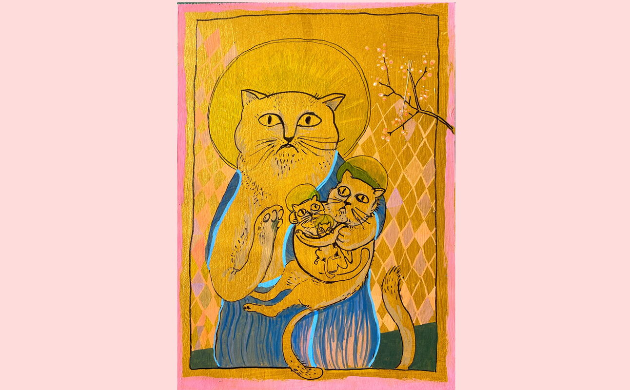 Die Ikone zeigt den verehrten und zugleich gefürchteten Kater Pantoffel, der bei mir zuhause Patriarch ist. Ich habe herausbekommen, daß er nicht nur Bundeskatzler sondern auch eine Heiliger ist und viele Generationen von weiteren Katzenheiligen in sich trägt, wie eine Matroschka.