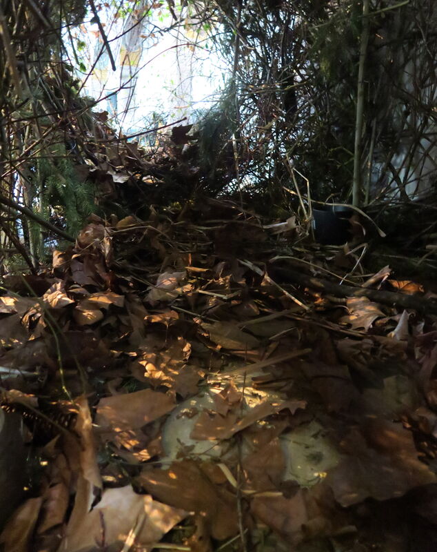 Shelter – einige Äste, etwas Reißig, ein bisschen Moos, alles Naturmaterialien – Shelter – Zuflucht, Schutz, Unterschlupf bis hin zu Asyl –
