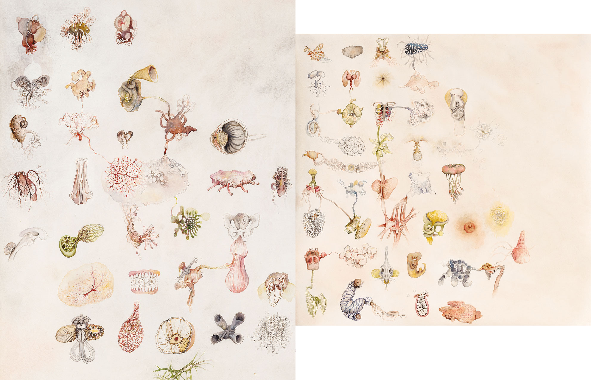 Wie eine »Bricolage«, die aus unterschiedlichen Versatzstücken etwas Neues schat, funktionieren viele ihrer Arbeiten, in denen sie aus Ton, Gips, Transparentpapier, Draht oder Latex scheinwissenschaftliche Objekte und Dokumente erschat, welche aus den Sammlungen von Forschungsreisenden, aus aufgelassenen Laboren und frühen naturkundlichen Museen stammen könnten. Bei näherem Betrachten aber sind es wild wuchernde und im besten Sinne zusammengebastelte Assoziationsballungen, die Disparates ebenso vereinen, wie sie es wieder zerfallen lassen. In das Spannungsfeld von Zerfall und Wachstum stellt sie auch die große Installation »Störfall« in der Pfeilerhalle der Rathausgalerie.