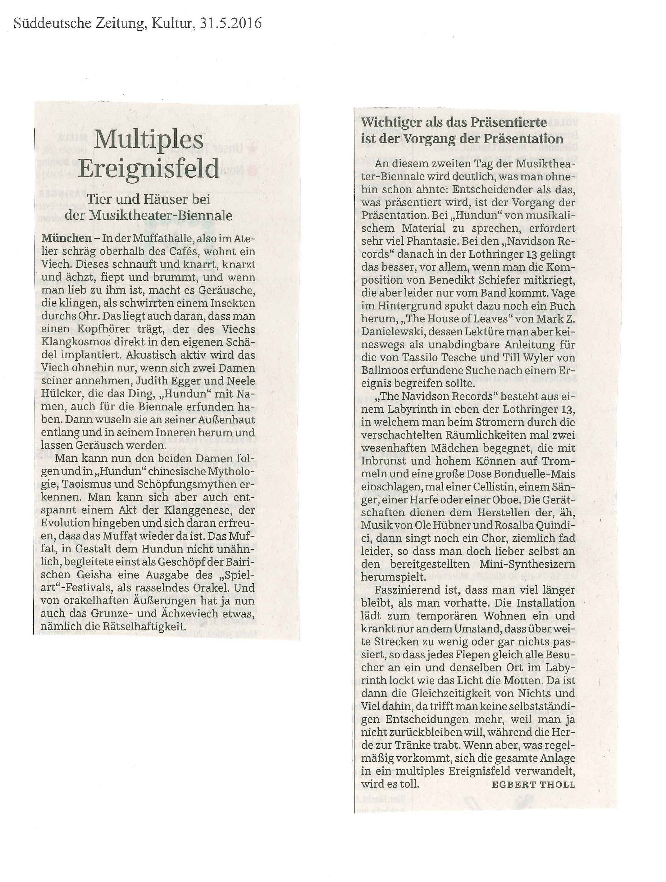 Die bildende Künstlerin Judith Egger und die Komponistin Neele Hülcker haben das Ding hier zum Leben erweckt, als klingende Installation während der Münchener Biennale für neues Musiktheater (28.5. – 9.6.2016). Die Idee: Ein Kunstwerk zu schaffen, das sowohl visuell als auch musikalisch überzeugt.