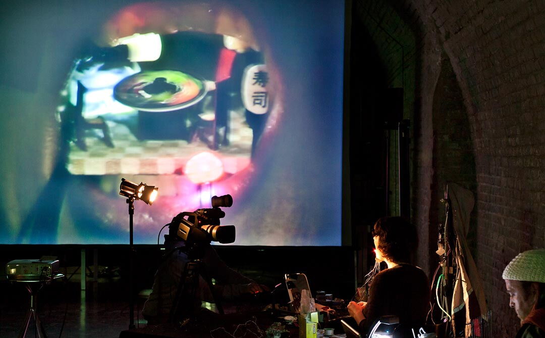 Judith Egger stages it in an unusual location in several stage sets: in her own oral cavity. This intimate passage between inside and outside, before breath and sound leave the body, is the ideal space for her to approach the subject. The scenarios created in the oral cavity are transmitted live to a screen via video camera (camera: Maria Rilz) and accompanied by American sound artist Michael Northam. He underpins the minimal changes in the scenarios with a continuous ‘sound compost’. This is the term he uses to describe his style of composition, in which sound recordings from a wide variety of sources are digitally processed and combined live with instruments he plays himself. Bardo was supported by a music grant from the Department of Culture of the City of Munich.