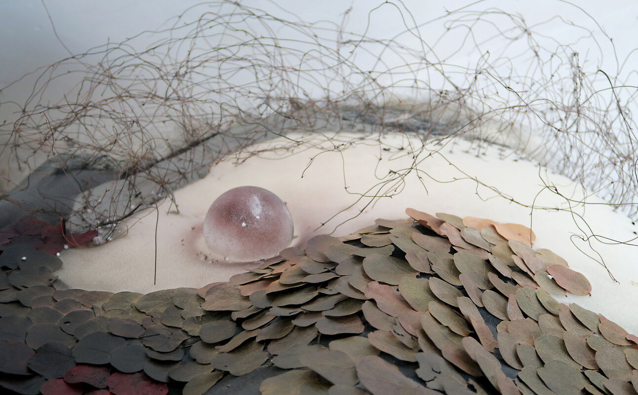 Hundun was not Hundun from the beginning. He only got his name in the course of the artistic process. At first, there was simply a hanging form. The longer Judith Egger worked on it, the more Hundun emerged. Hundun comes from Chinese mythology. He is a benevolent ruler and represents matter before the beginning of the world, i.e., matter defined neither by time nor space: an amorphous mass without a single orifice. And according to legend, Hundun is an extremely popular host. One day, in gratitude for his hospitality, he is offered seven holes to be drilled into his body over seven days. Hundun is delighted and accepts the gift. But on the seventh day, with the seventh hole, he dies.