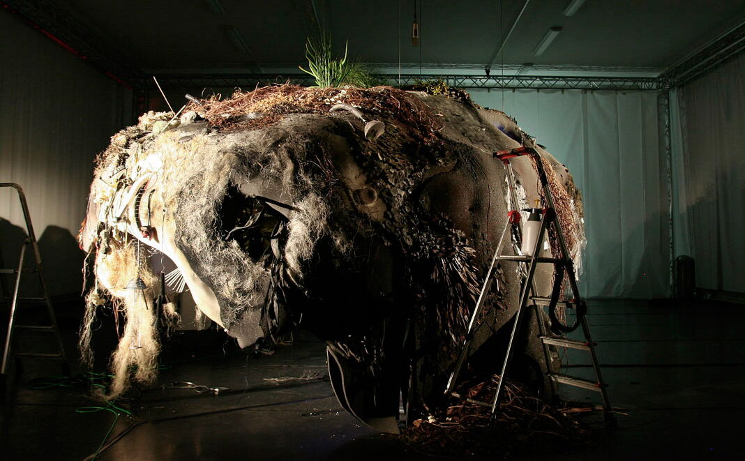 Sechs Meter lang, 2,5 Meter breit und drei Meter hoch. So schwebt es über dem Boden, ohne Kopf und ohne Schwanz, ein amorphes Wesen, das Töne von sich gibt, eben: Hundun.